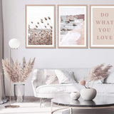 This coastal art print features lagurus ovatus grass a variant of pampas grass more commonly known as bunny tail grass, this neutral art print is a beach inspired artwork that will work in a variety of Interior decor styling and is available as an unframed poster print, timber framed print or premium canvas print.