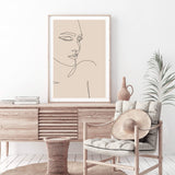This modern abstract art print features a line art drawing of a female figure highlighting the beautiful curves & is part of our modern abstract art collection, this art print will suit any decor styling and is available as an unframed poster print, timber framed print or premium canvas print.