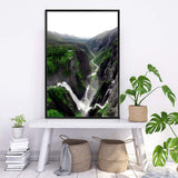 Featuring a view from the top of mabodalen, this nature art print shows the famous voringsfossen waterfall in Hordaland Norway, this art print will suit any decor styling and is available as an unframed poster print, timber framed print or premium canvas print.